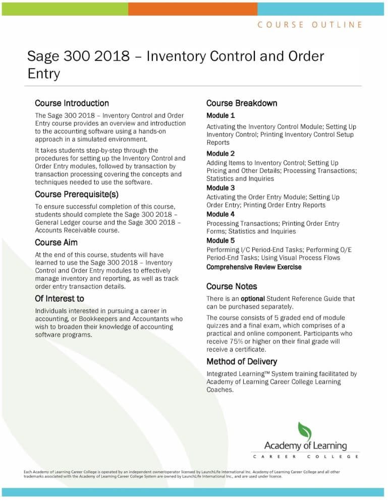 The Sage 300 2018 – Inventory Control and Order Entry course provides an overview and introduction to the accounting software using a hands-on approach in a simulated environment. It takes students step-by-step through the procedures for setting up the Inventory Control and Order Entry modules, followed by transaction-by-transaction processing, covering the software’s concepts and techniques. Open PDF of Sage 300 Level 4 Course.